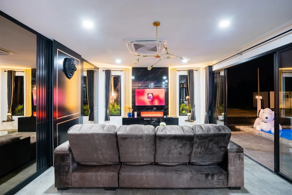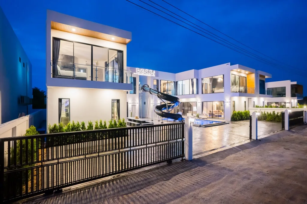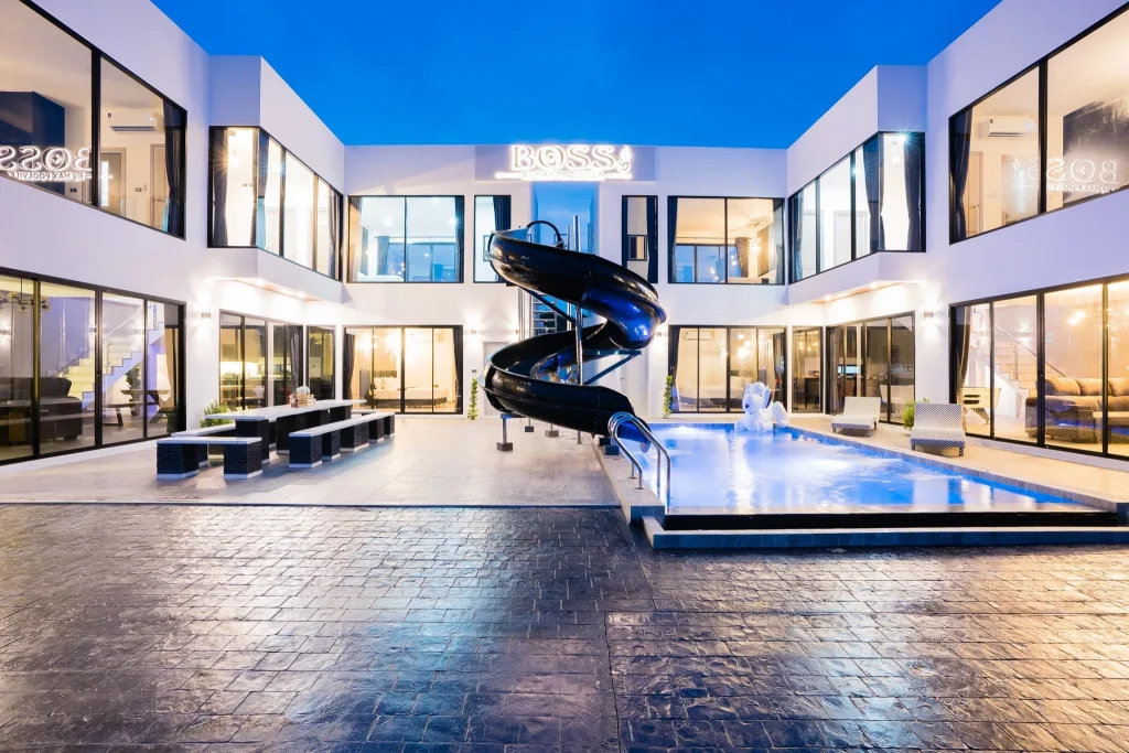พูลวิลล่าขนาดใหญ่รองรับกรุ๊ปบริษัทหรือสัมนาประชุม ขนา่ด 8 ห้องนอน 10 ห้องน้ำ บ้านกว้างใหม่สวยกริ๊บสไตล์โมเดิร์นห่างทะเลบางเสร่เพียง 1 กิโลเมตร มาพร้อมฟังชั่นแน่นทุกอย่าง เรียกได้ว่าครบเครื่องสำหรับคุณลูกค้าที่กำลังมองหาบ้านพักพูลวิลล่าพัทยา