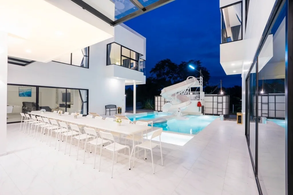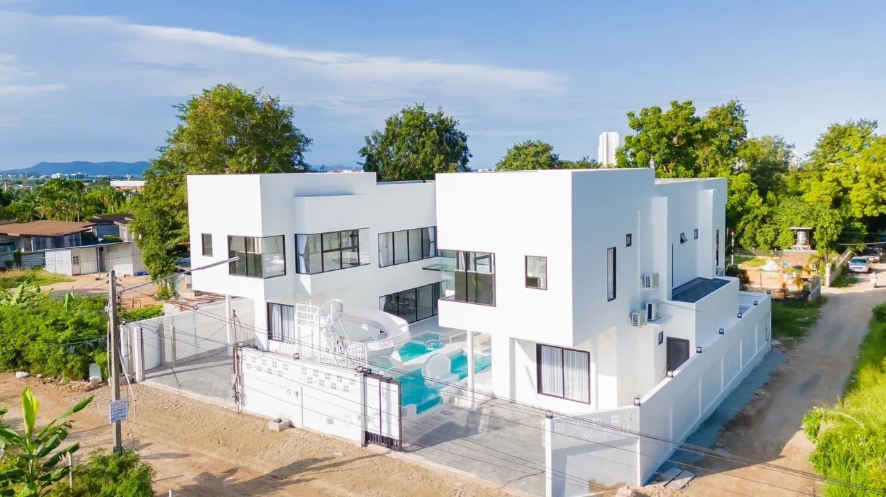 พลูวิลล่าพัทยาหลังใหญ่ 14 ห้องนอน สร้างใหม่แกะกล่อง สไตล์โมเดิร์น โทนขาว เรียบหรู ดูดี เป็นที่พักที่เหมาะสำหรับกรุ๊ปบริษัทหรือครอบครัวใหญ่ กลุ่มเพื่อนๆกลุ่มใหญ่ จัดงานเลี้ยง งานสังสรรค์ งานสัมมนาและจัดปาร์ตี้ริมสระว่ายน้ำเรียกได้ว่าครบเครื่องสำหรับคุณลูกค้าที่กำลังมองหาบ้านพักพูลวิลล่าพัทยา