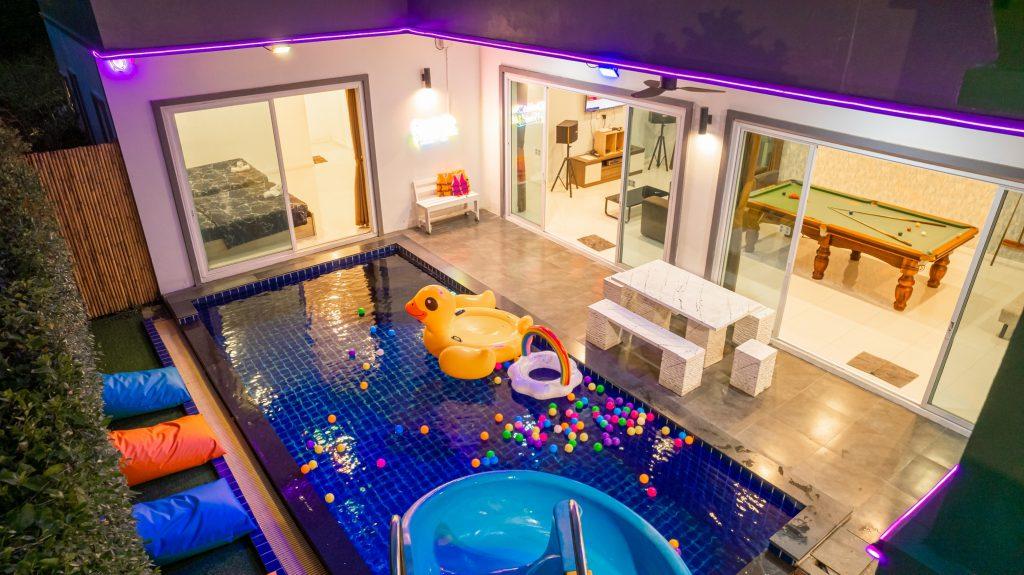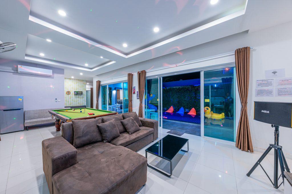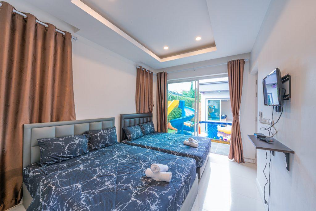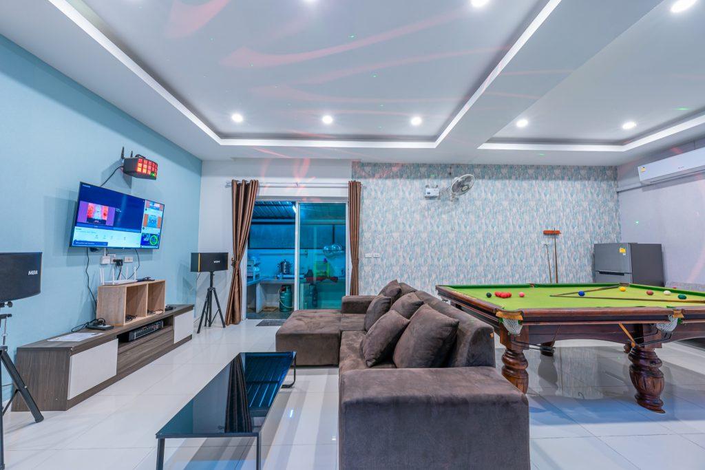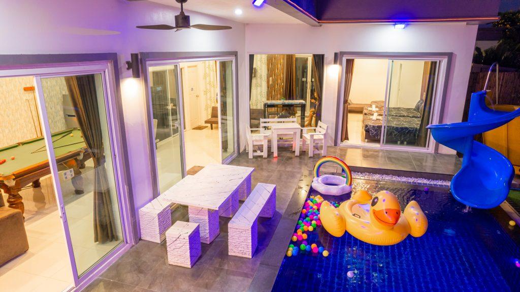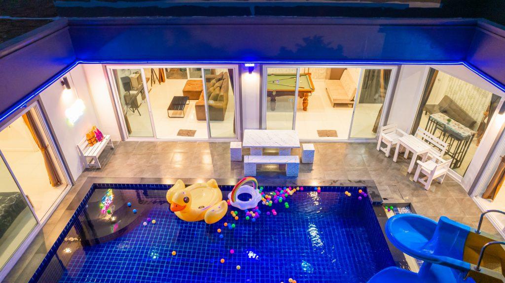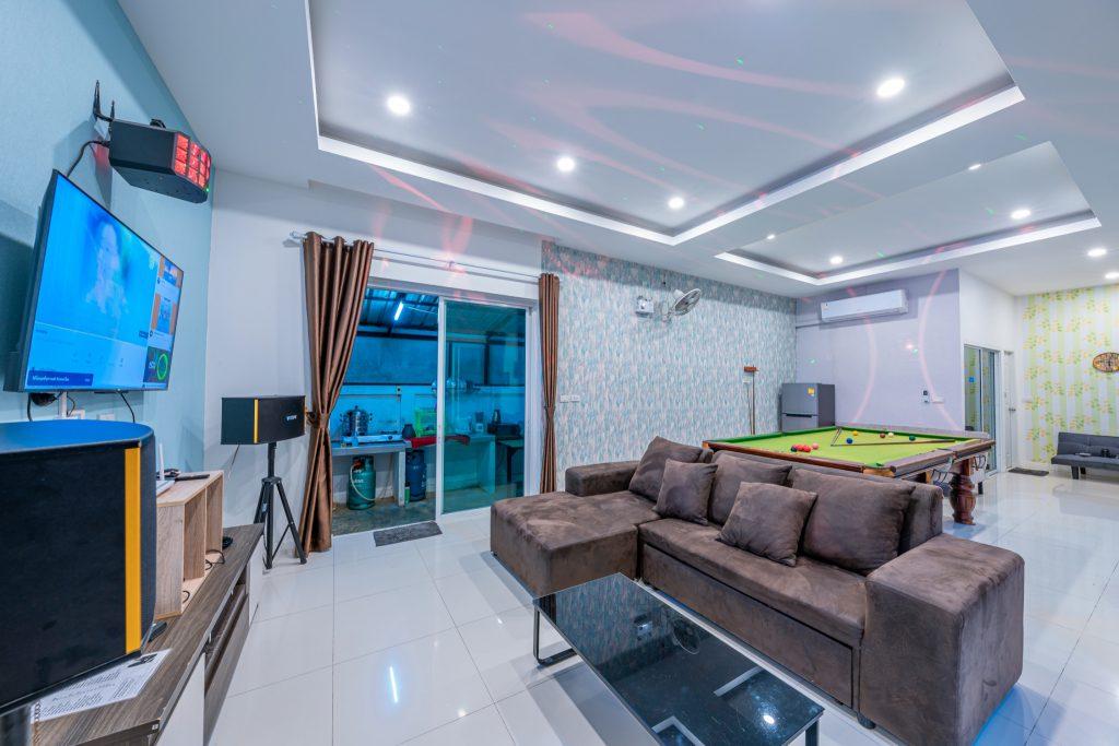 บ้านพัก 3 ห้องนอน 4 ห้องน้ำ มีห้องน้ำในตัวทุกห้อง ทีวีทุกห้อง ห่างทะเลเพียง 3 กิโลเมตรเท่านั้น ขับรถ 5 นาทีถึงทะเลบ้านอำเภอ ร้านอาหารใกล้บ้านเพียง 100 เมตร ใกล้แหล่งที่เที่ยว มาพร้อมฟังชั่นในบ้าน ไฟเทค โต๊ะสนุ๊ก คาราโอเกะ สไลเดอร์ เรียกได้ว่าครบเครื่องสำหรับคุณลูกค้าที่กำลังมองหาบ้านพักพูลวิลล่าพัทยา