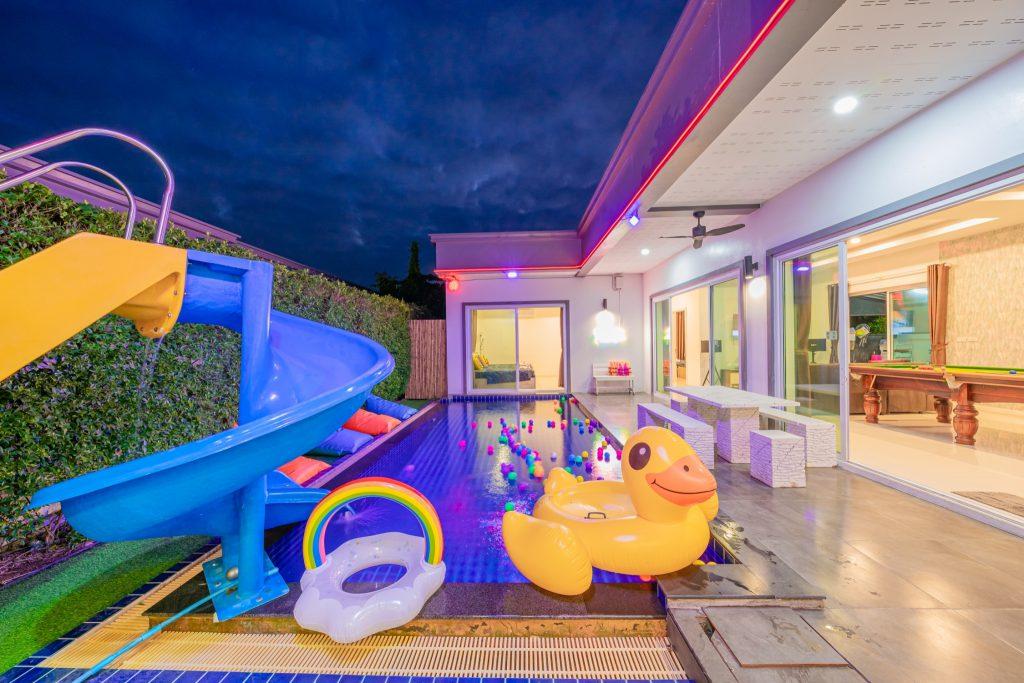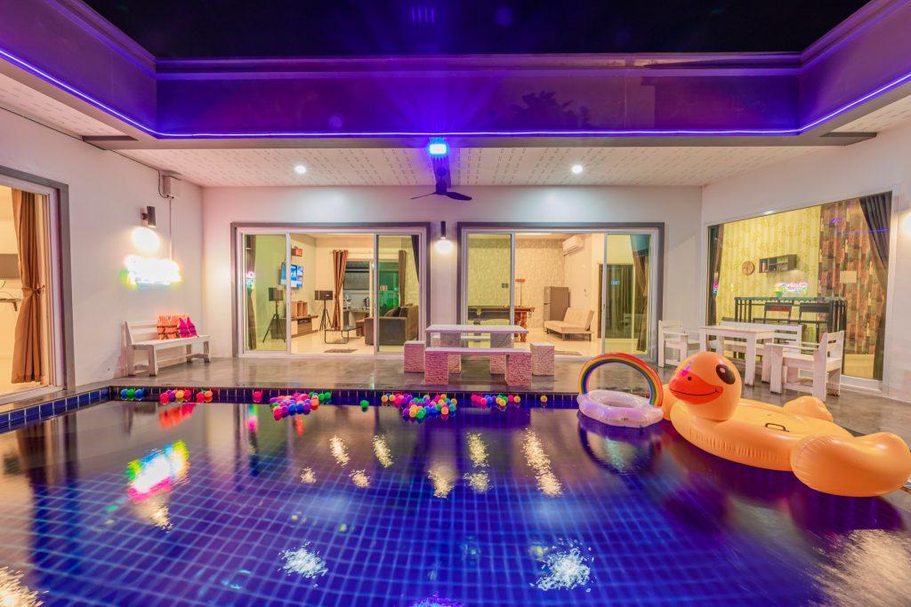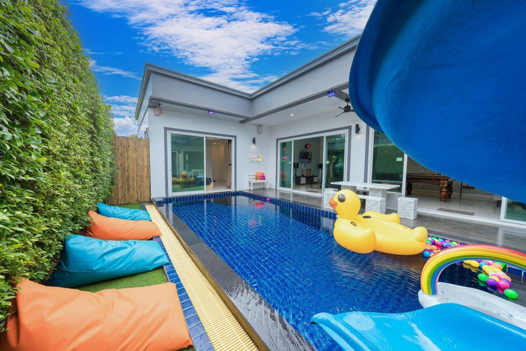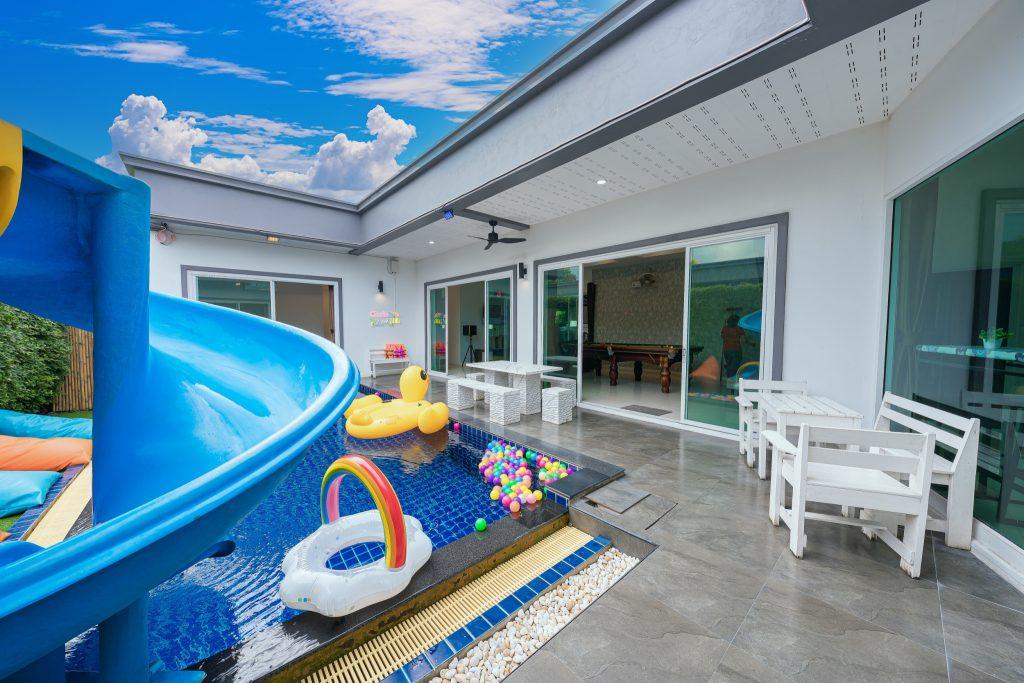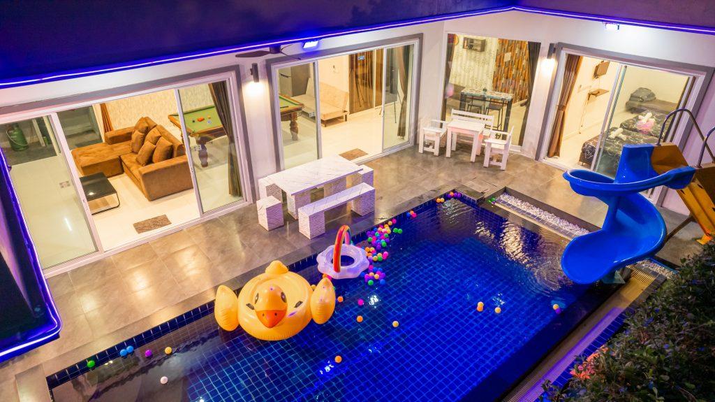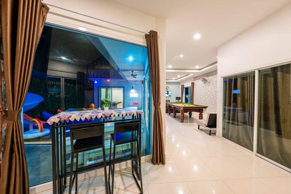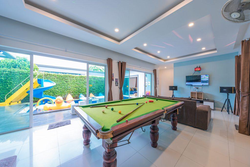 บ้านพัก 3 ห้องนอน 4 ห้องน้ำ มีห้องน้ำในตัวทุกห้อง ทีวีทุกห้อง ห่างทะเลเพียง 3 กิโลเมตรเท่านั้น ขับรถ 5 นาทีถึงทะเลบ้านอำเภอ ร้านอาหารใกล้บ้านเพียง 100 เมตร ใกล้แหล่งที่เที่ยว มาพร้อมฟังชั่นในบ้าน ไฟเทค โต๊ะสนุ๊ก คาราโอเกะ สไลเดอร์ เรียกได้ว่าครบเครื่องสำหรับคุณลูกค้าที่กำลังมองหาบ้านพักพูลวิลล่าพัทยา