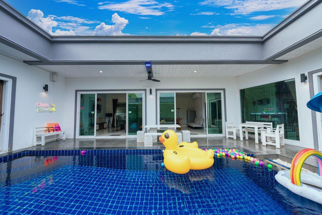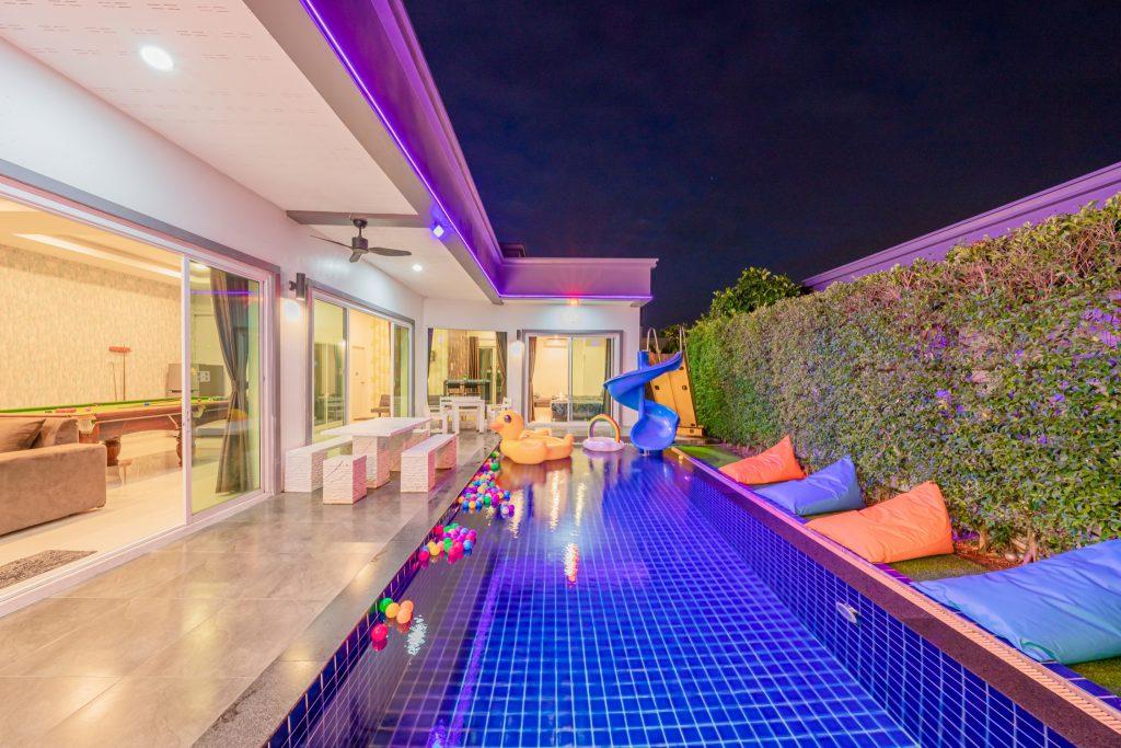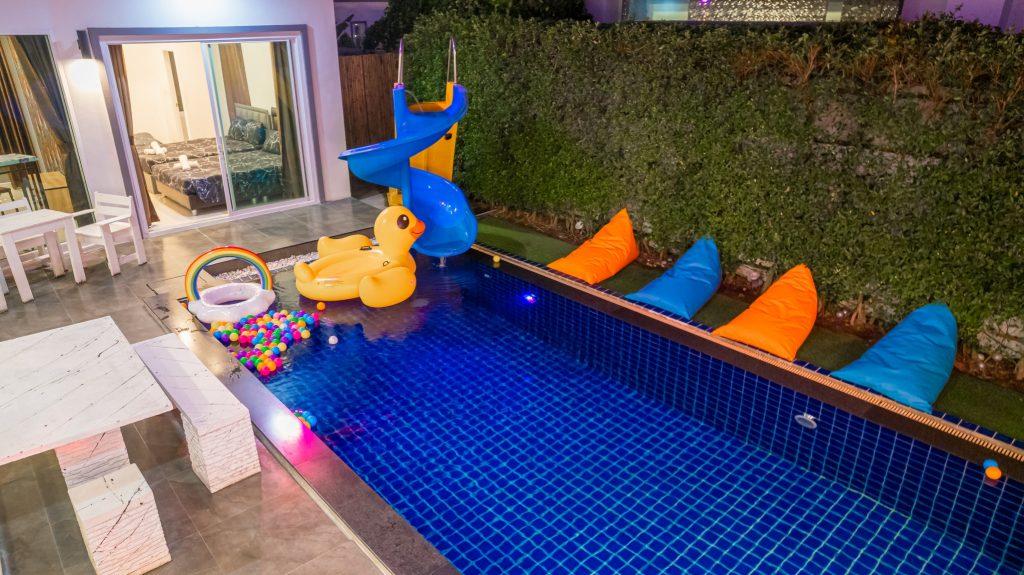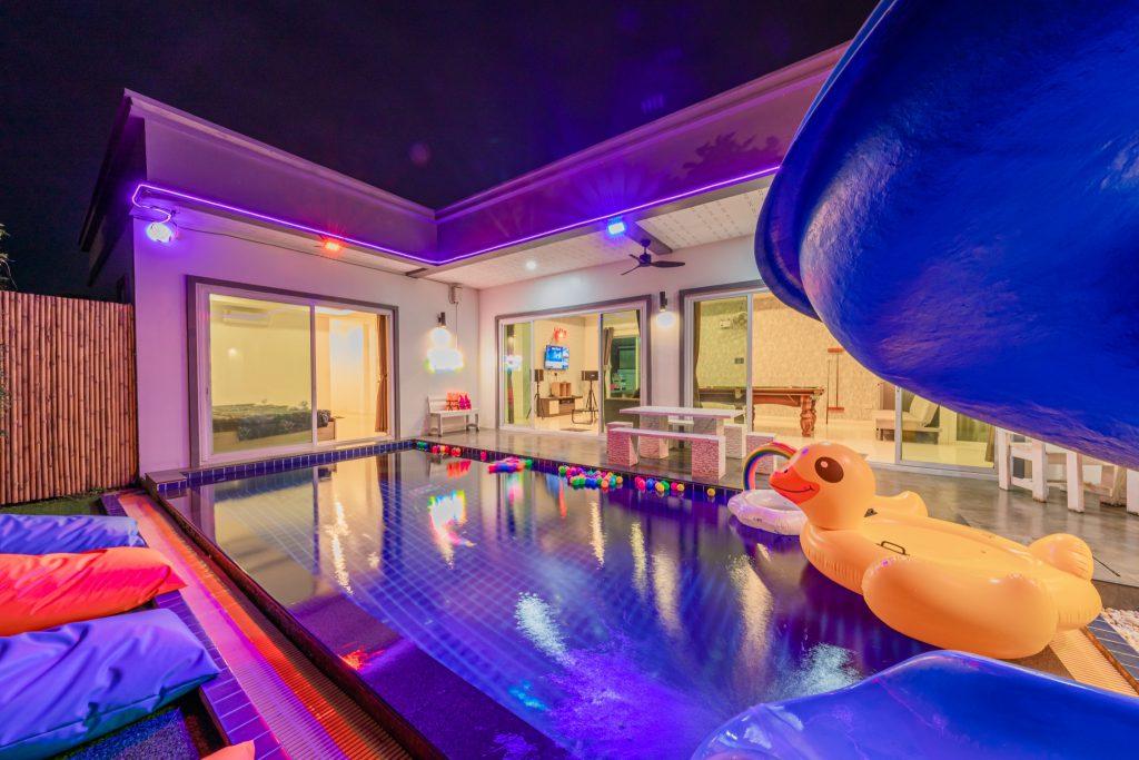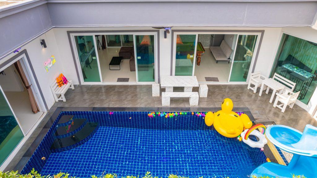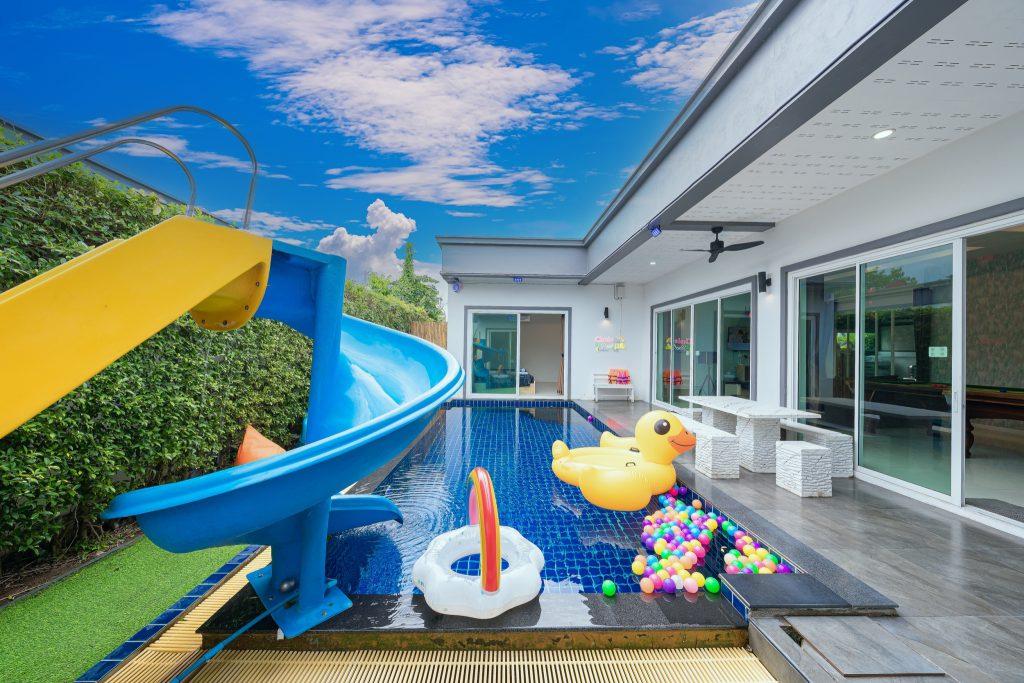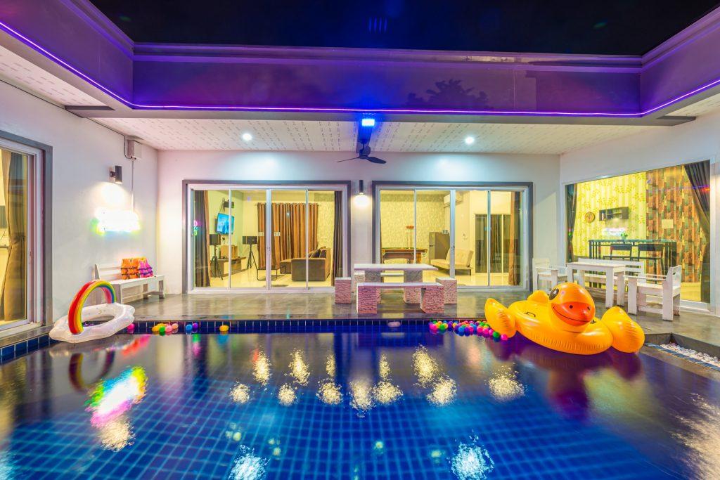 บ้านพัก 3 ห้องนอน 4 ห้องน้ำ มีห้องน้ำในตัวทุกห้อง ทีวีทุกห้อง ห่างทะเลเพียง 3 กิโลเมตรเท่านั้น ขับรถ 5 นาทีถึงทะเลบ้านอำเภอ ร้านอาหารใกล้บ้านเพียง 100 เมตร ใกล้แหล่งที่เที่ยว มาพร้อมฟังชั่นในบ้าน ไฟเทค โต๊ะสนุ๊ก คาราโอเกะ สไลเดอร์ เรียกได้ว่าครบเครื่องสำหรับคุณลูกค้าที่กำลังมองหาบ้านพักพูลวิลล่าพัทยา