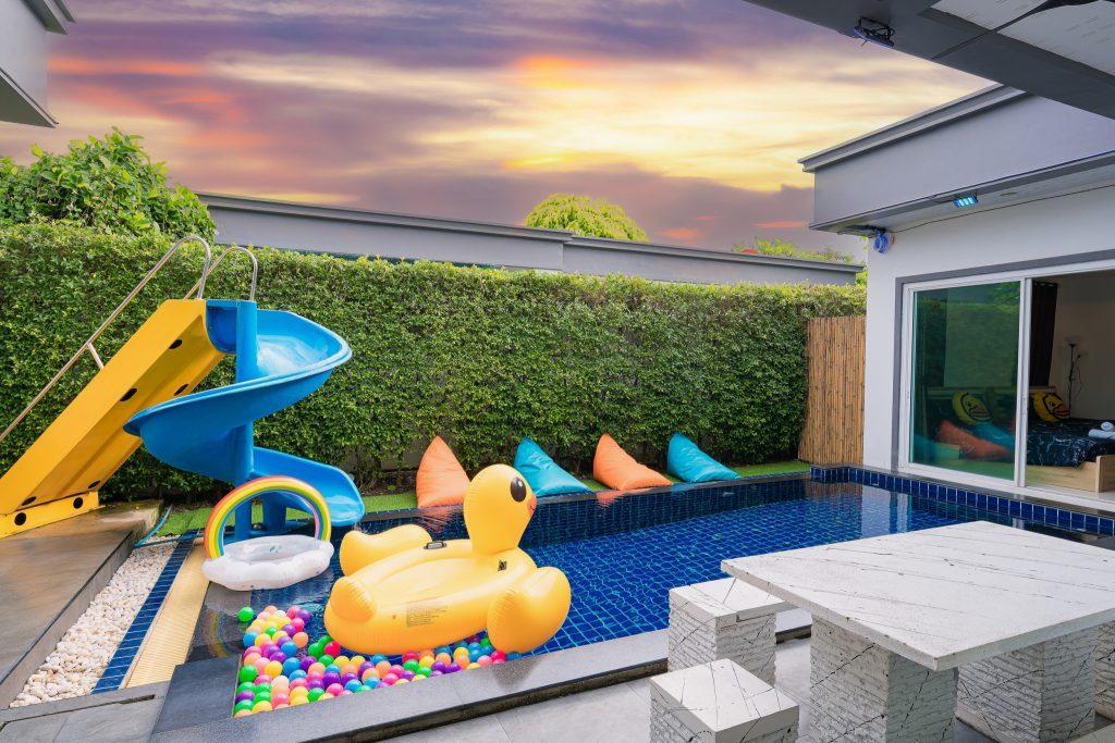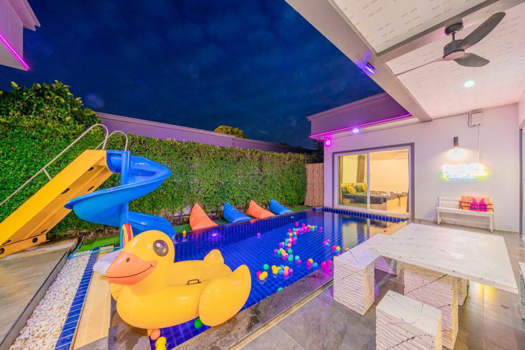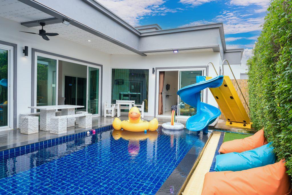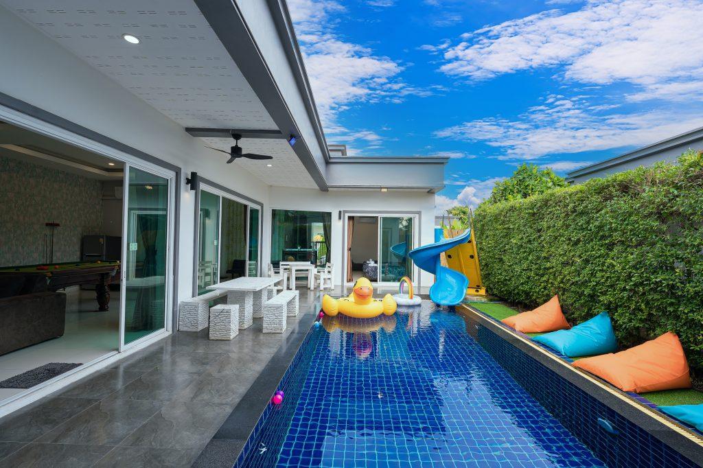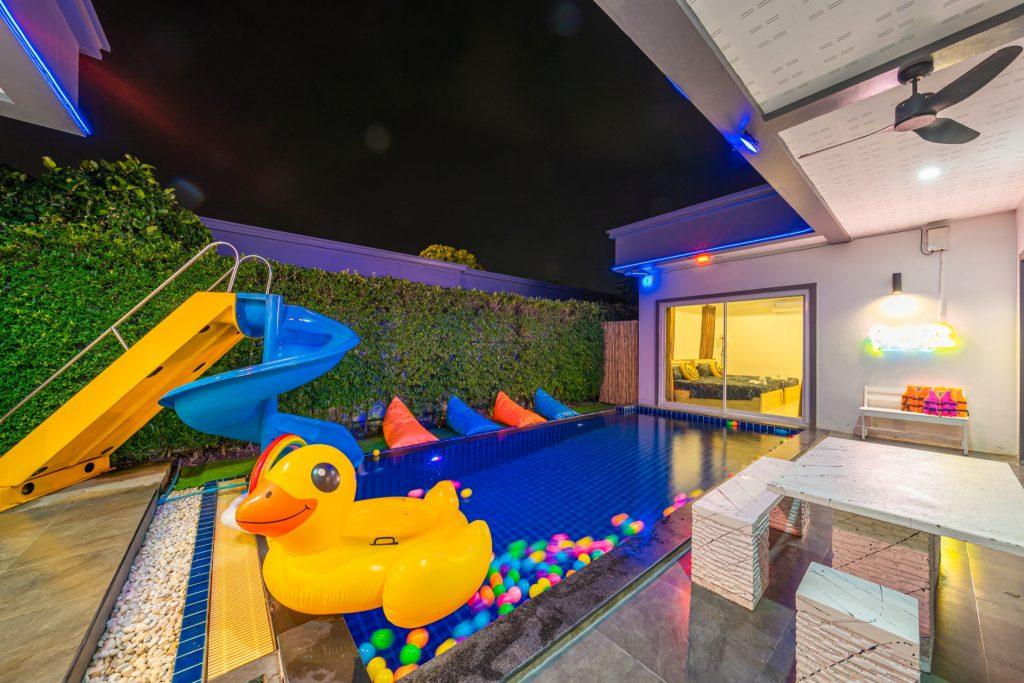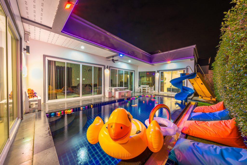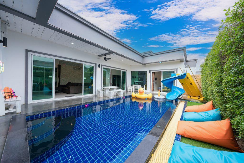 บ้านพัก 3 ห้องนอน 4 ห้องน้ำ มีห้องน้ำในตัวทุกห้อง ทีวีทุกห้อง ห่างทะเลเพียง 3 กิโลเมตรเท่านั้น ขับรถ 5 นาทีถึงทะเลบ้านอำเภอ ร้านอาหารใกล้บ้านเพียง 100 เมตร ใกล้แหล่งที่เที่ยว มาพร้อมฟังชั่นในบ้าน ไฟเทค โต๊ะสนุ๊ก คาราโอเกะ สไลเดอร์ เรียกได้ว่าครบเครื่องสำหรับคุณลูกค้าที่กำลังมองหาบ้านพักพูลวิลล่าพัทยา