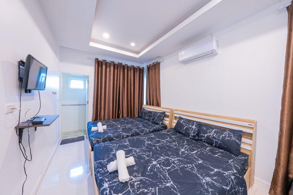 - ห้องนอนห้องที่ 1 เตียง 5 ฟุต 2 เตียง ห้องน้ำในตัว